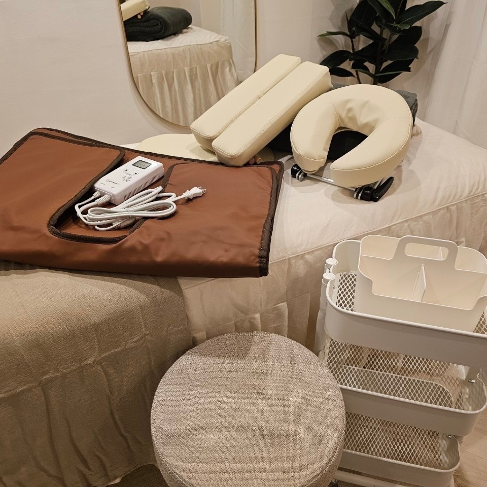 | 施術 ◇施術ベッド ※昇降式。OPENに伴って備品は全て新品です。 ◇ヒートマット(1台) | ◇アロマディフューザー(1台) ※加熱式Bluetoothスピーカー内臓 ◇ブランケット(1枚) |
